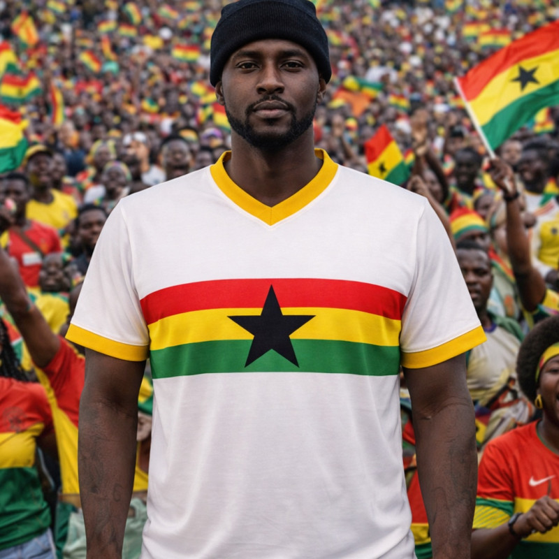 Camisa retrô da Seleção de Gana, modelo clássico da década de 80. Manto sagrado com gola V, manga curta e escudo bordado. Produzida em tecido de alta qualidade com padrão da Futebol Retrô. Ideal para colecionadores e fãs do futebol africano. Garantia de satisfação. Confecção em até 16 dias úteis. Entrega conforme o prazo dos Correios.