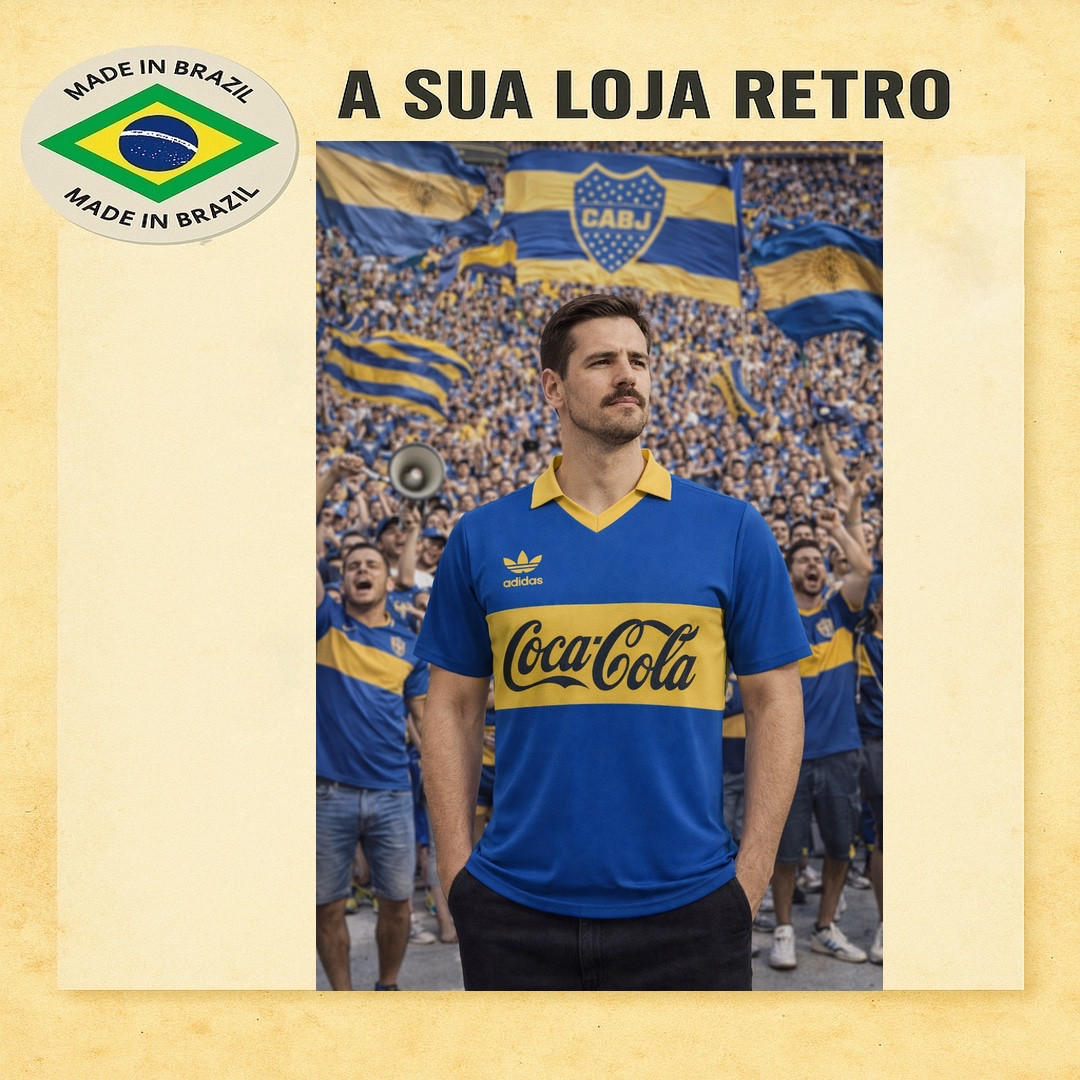 História do Boca Juniors. Camisa antiga do clube, verdadeiro manto sagrado da década de 80, símbolo da paixão na mítica La Bombonera. Clube fundado em 1905. Tecido de alta qualidade, logomarca bordada, gola polo, padrão Futebol Retrô. Camisa já vem com número incluso.
