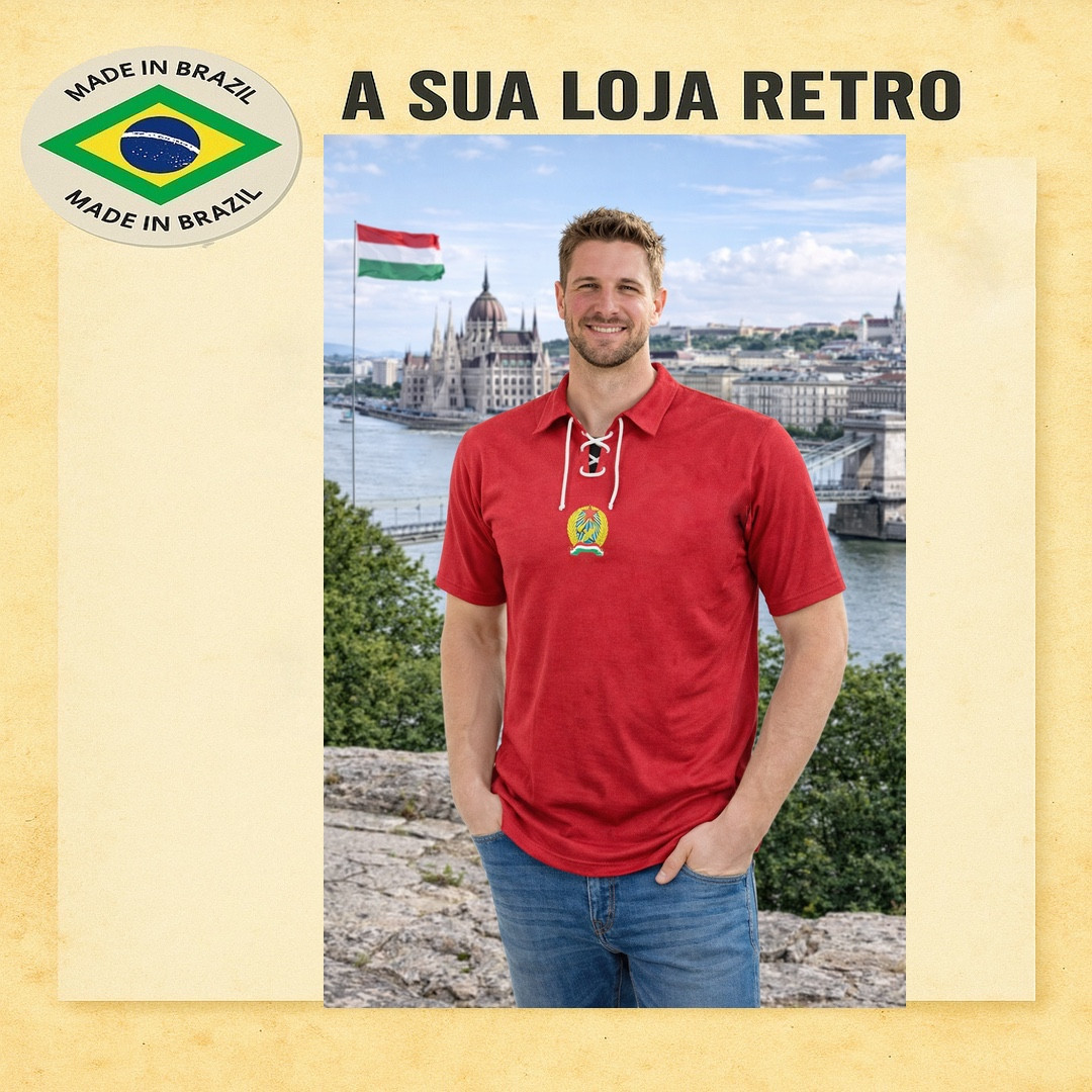 Camisa retrô Hungria Vermelha Puskas Cordinhas
