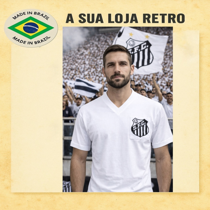 Camisa Santos Branca - Gola V - Ano 1970