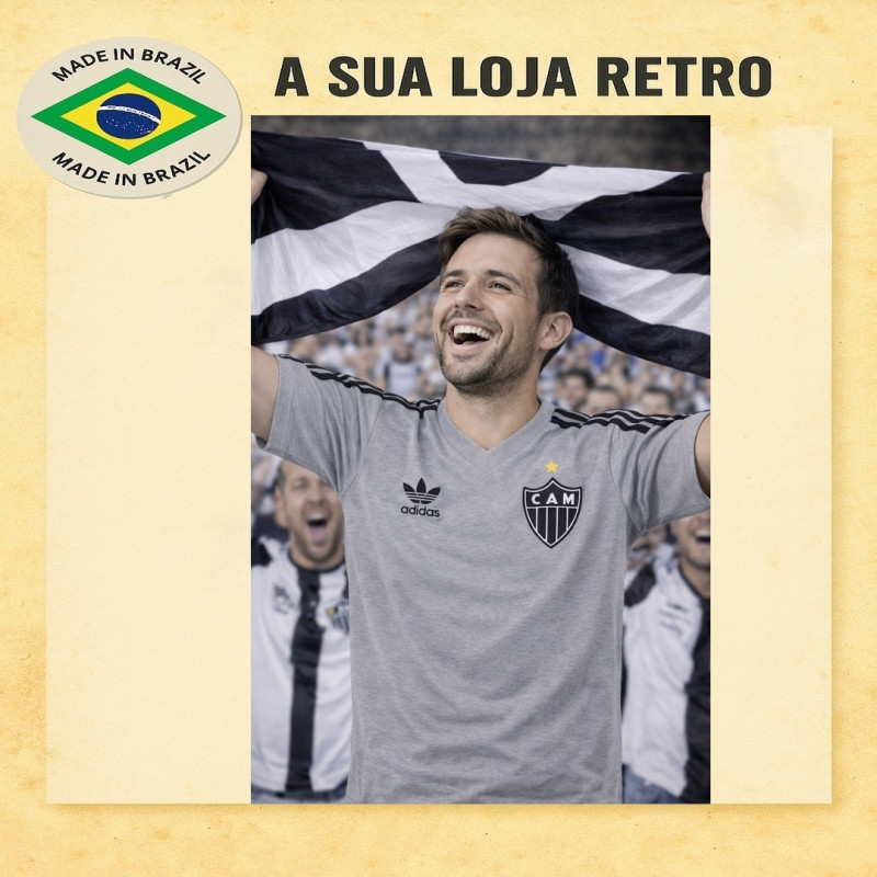 Camisa retrô do Atlético Mineiro inspirada na década de 80, símbolo do Campeonato Mineiro e do craque Sérgio Araújo. Modelo com gola polo, escudo bordado, manga curta e tecido de alta qualidade. Padrão fiel da Futebol Retrô. Ideal para colecionadores e torcedores apaixonados Confecção em 16 dias úteis. Entrega conforme prazo dos Correios